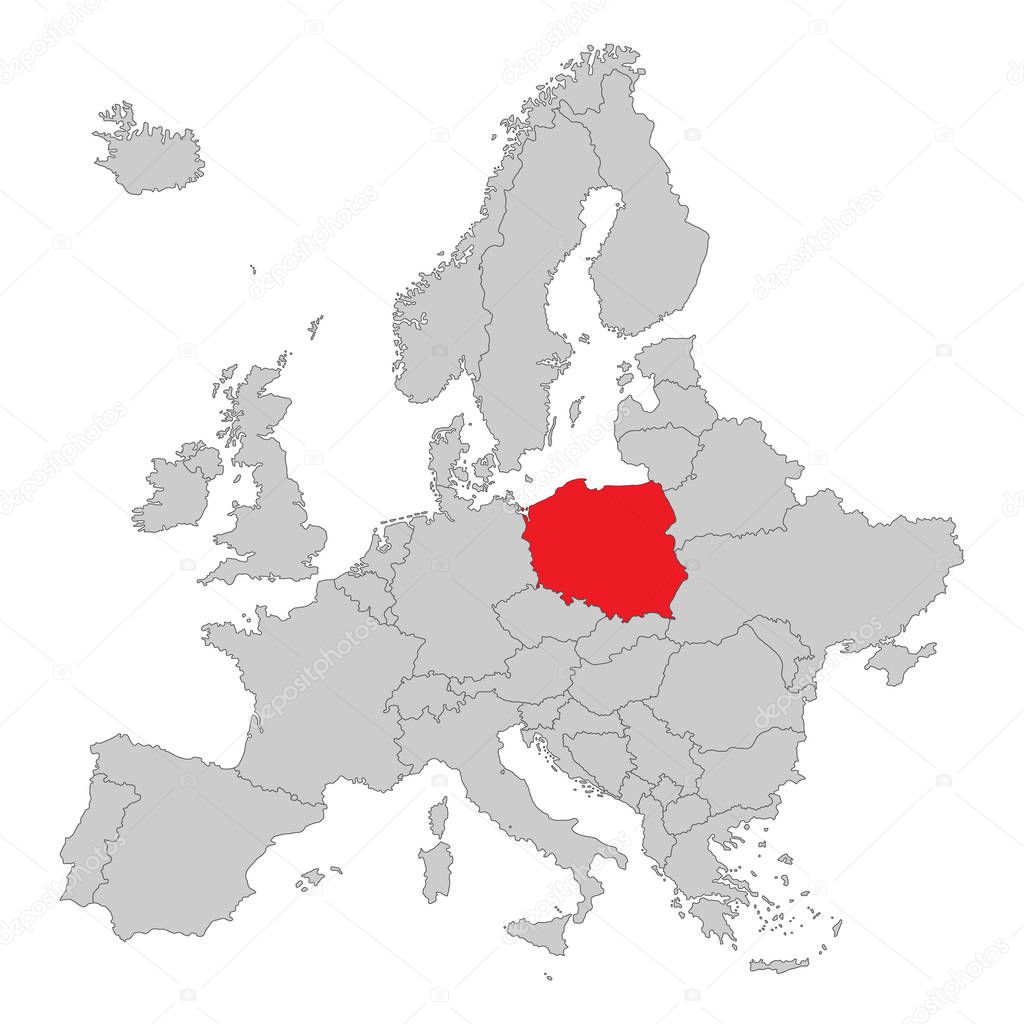 Map Europe With Highlighted Poland Royalty Free Vector Image